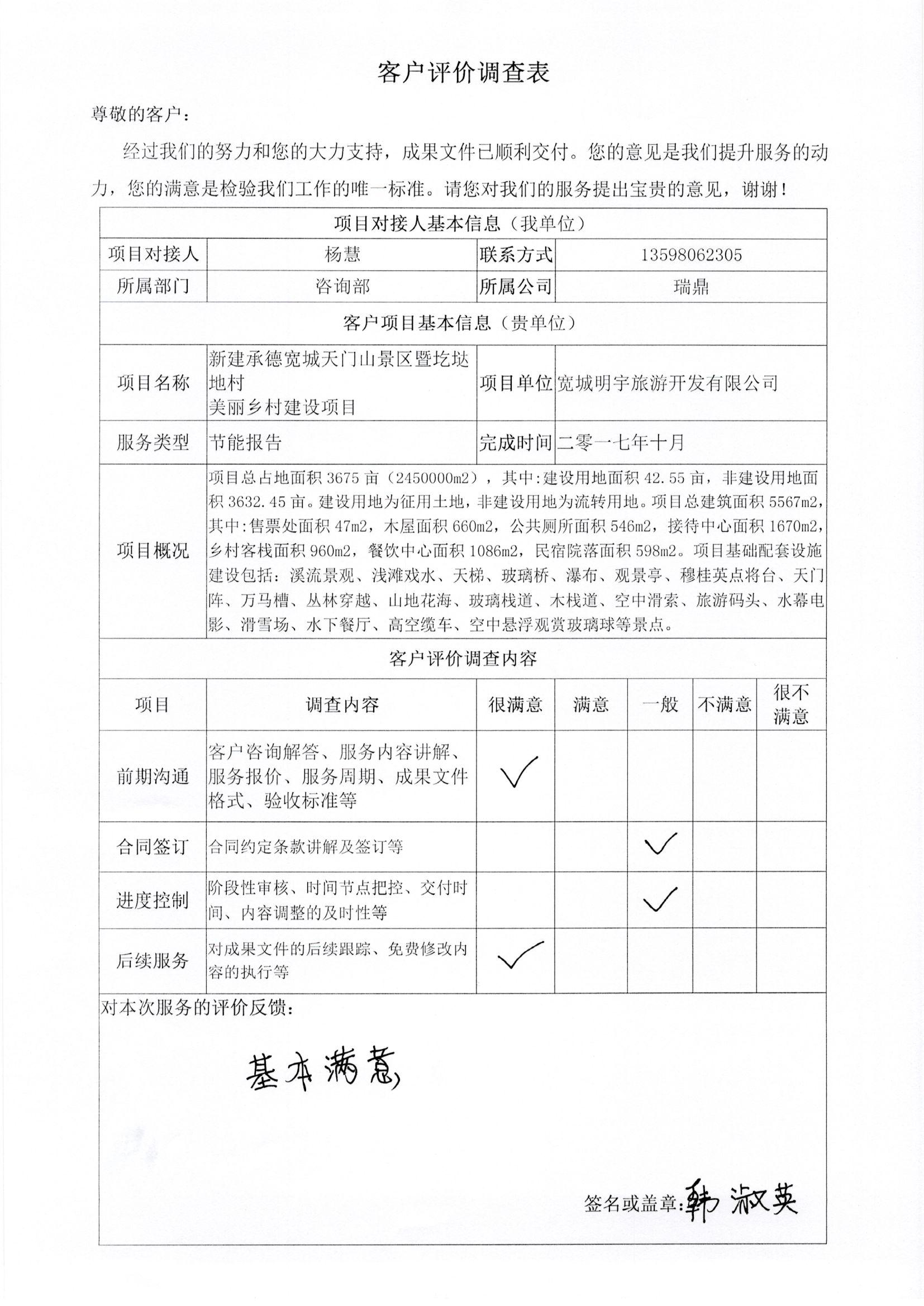 新建承德寬城天門山景區暨圪垯地村美麗鄉村建設項目客戶評價