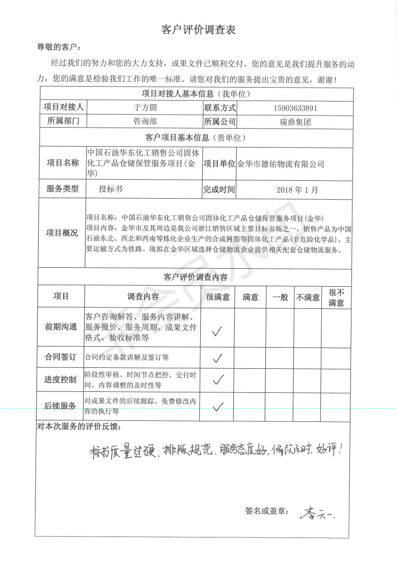 中國(guó)石油華東化工銷售公司固體化工產(chǎn)品倉(cāng)儲(chǔ)保管服務(wù)項(xiàng)目(金華)客戶評(píng)價(jià)…… |