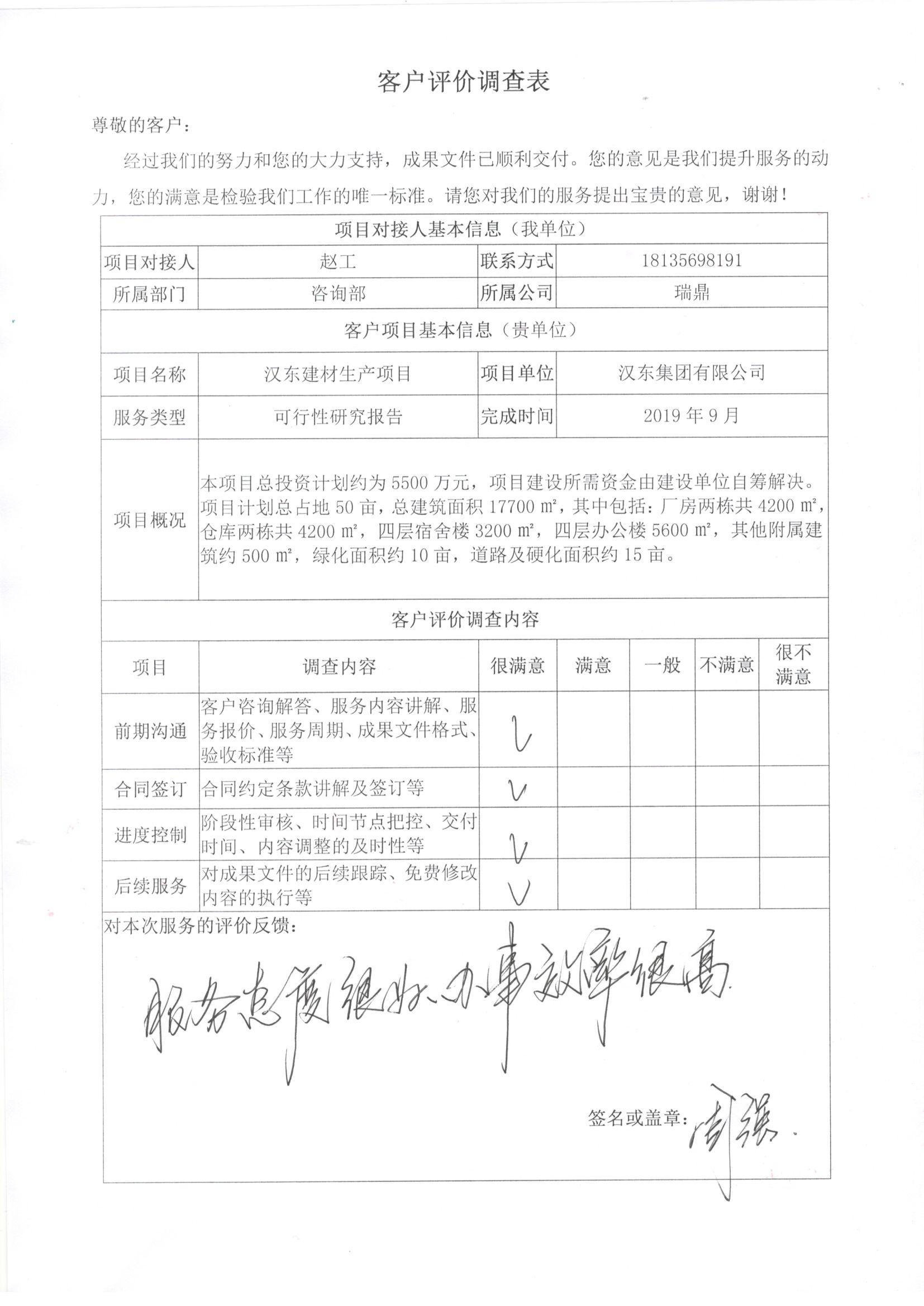 漢東建材生產(chǎn)項(xiàng)目客戶評(píng)價(jià)…… |