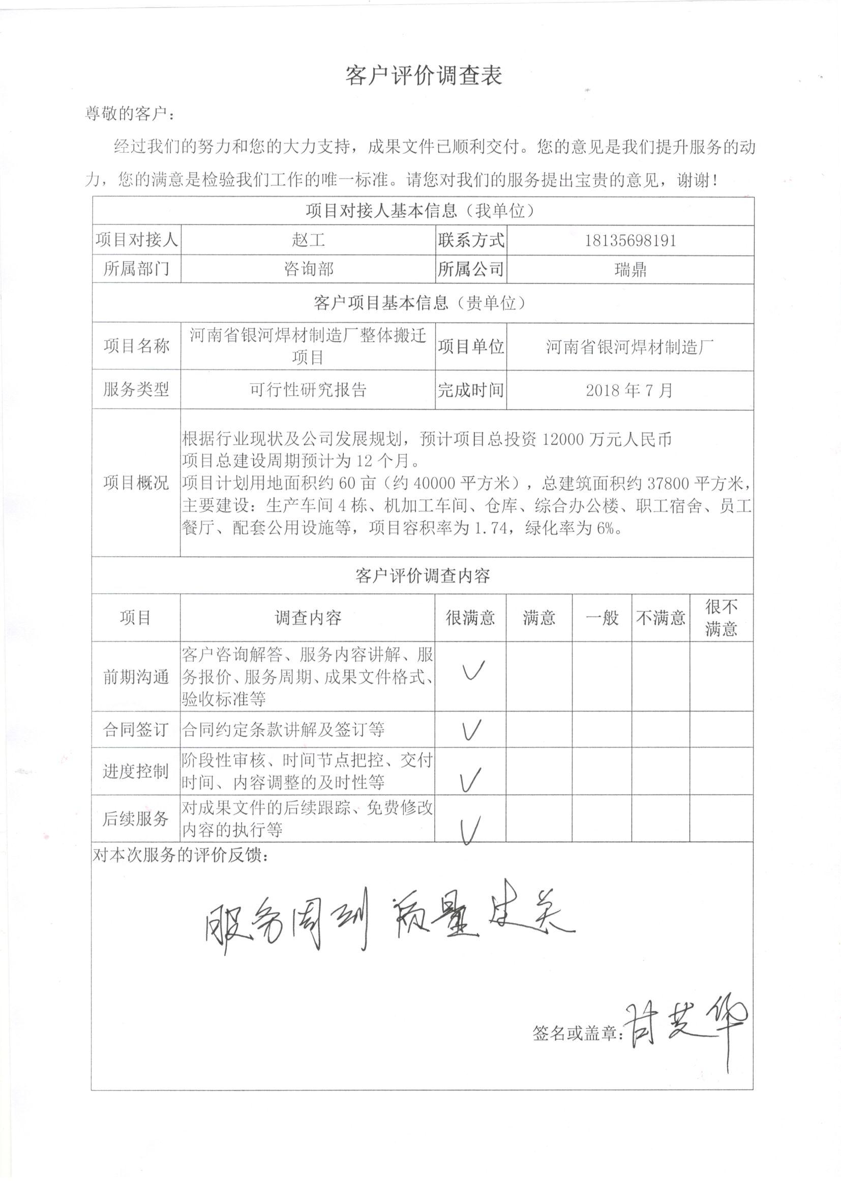 河南省銀河焊材制造廠整體搬遷項(xiàng)目客戶評(píng)價(jià)…… |